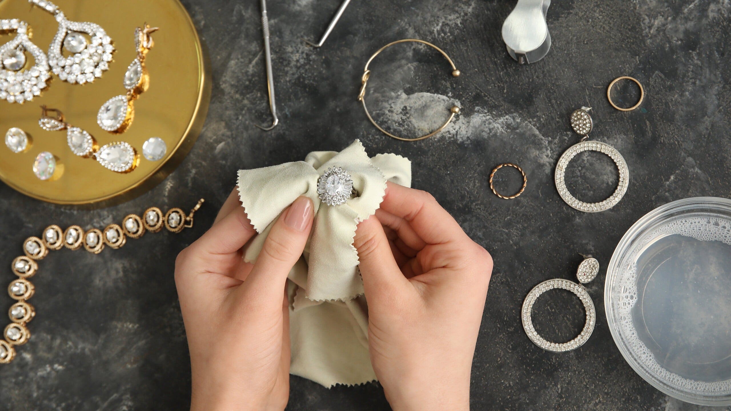 Remove jewellery before sleeping, swimming, or exercising. Avoid direct contact with perfumes, lotions, and household chemicals. Put jewellery on last when dressing, and remove it first at the end of the day.