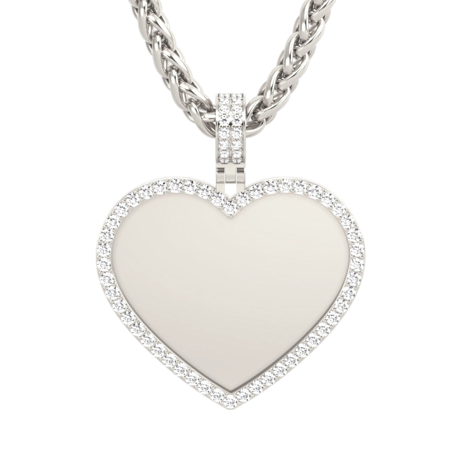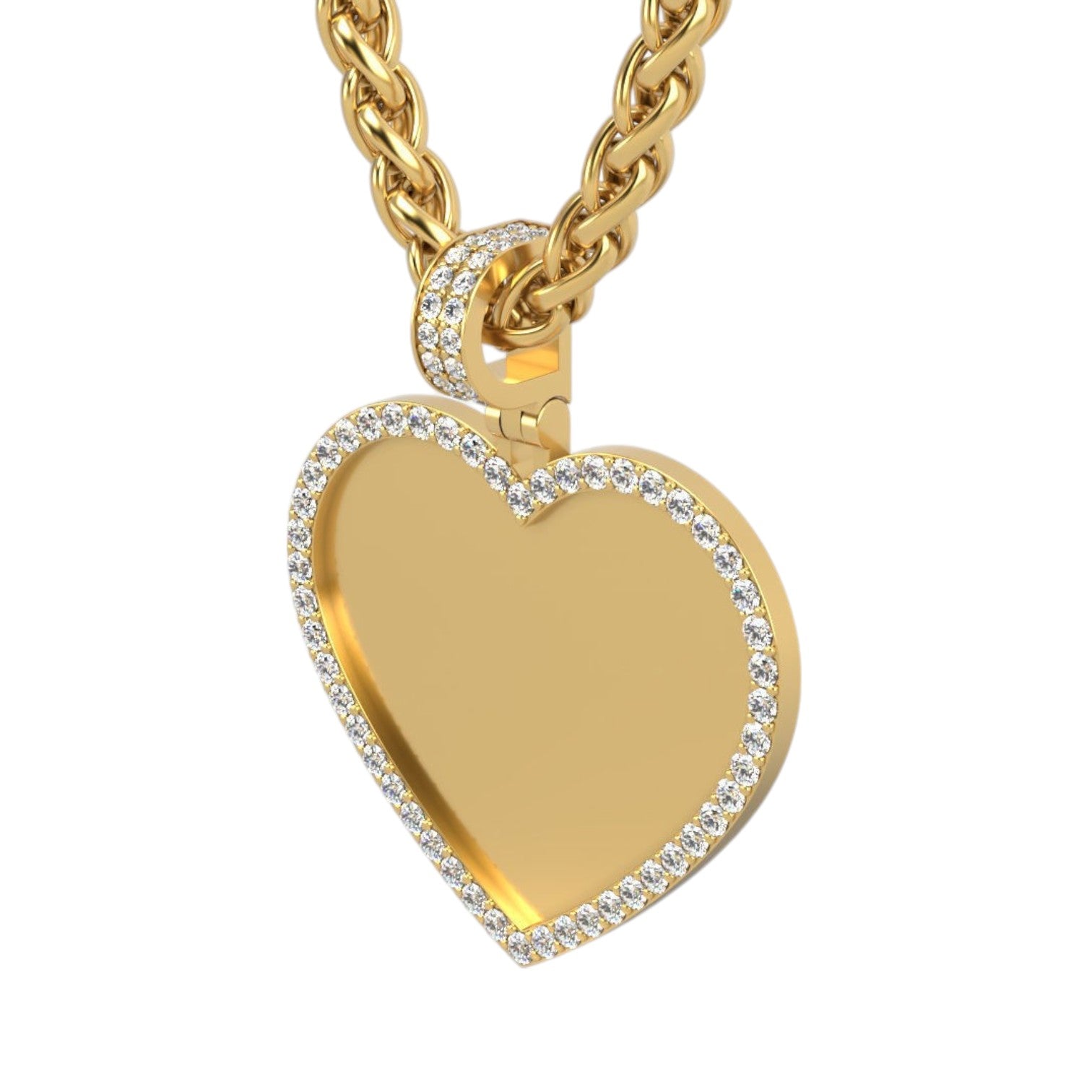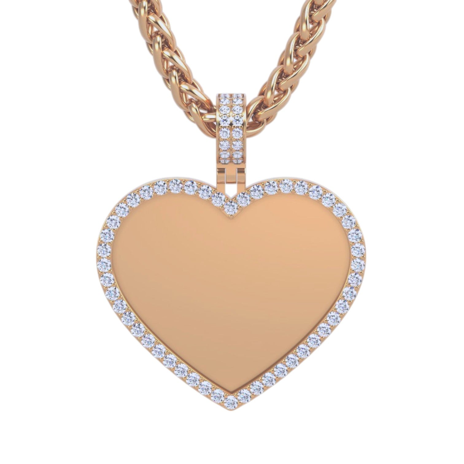 Experience the beauty and elegance of our Heart Picture Pendant, adorned with a stunning row of round brilliant cut diamonds. Available in 1.0", 1.5" and 2.0" sizes, this pendant is sure to make a statement and add a touch of glamour to any outfit. Treat yourself or a loved one to this exquisite piece and shine bright like a diamond every day!