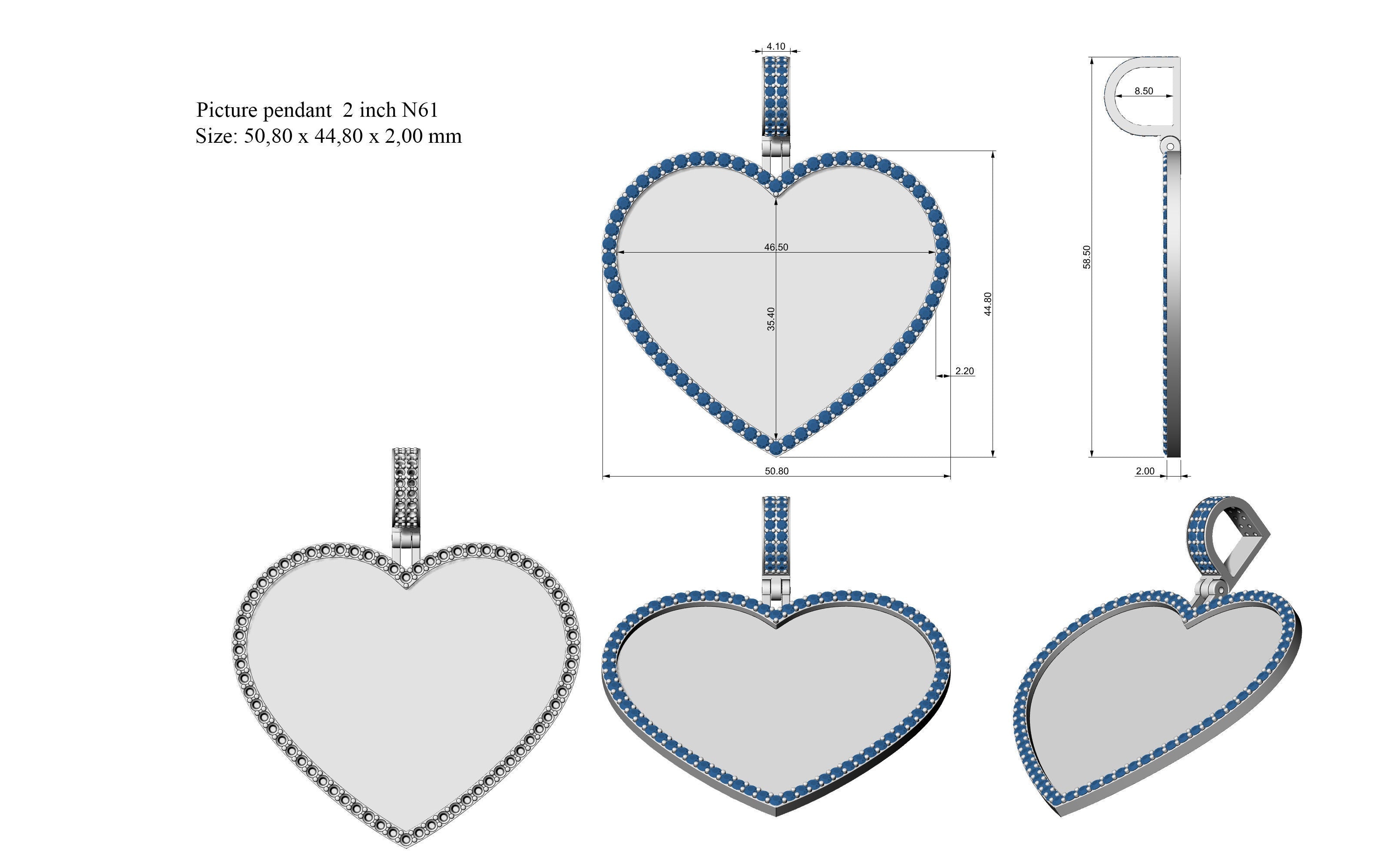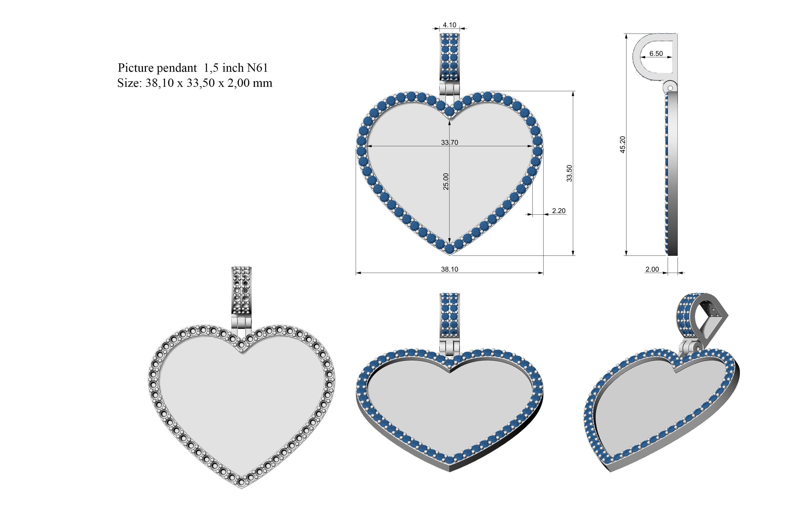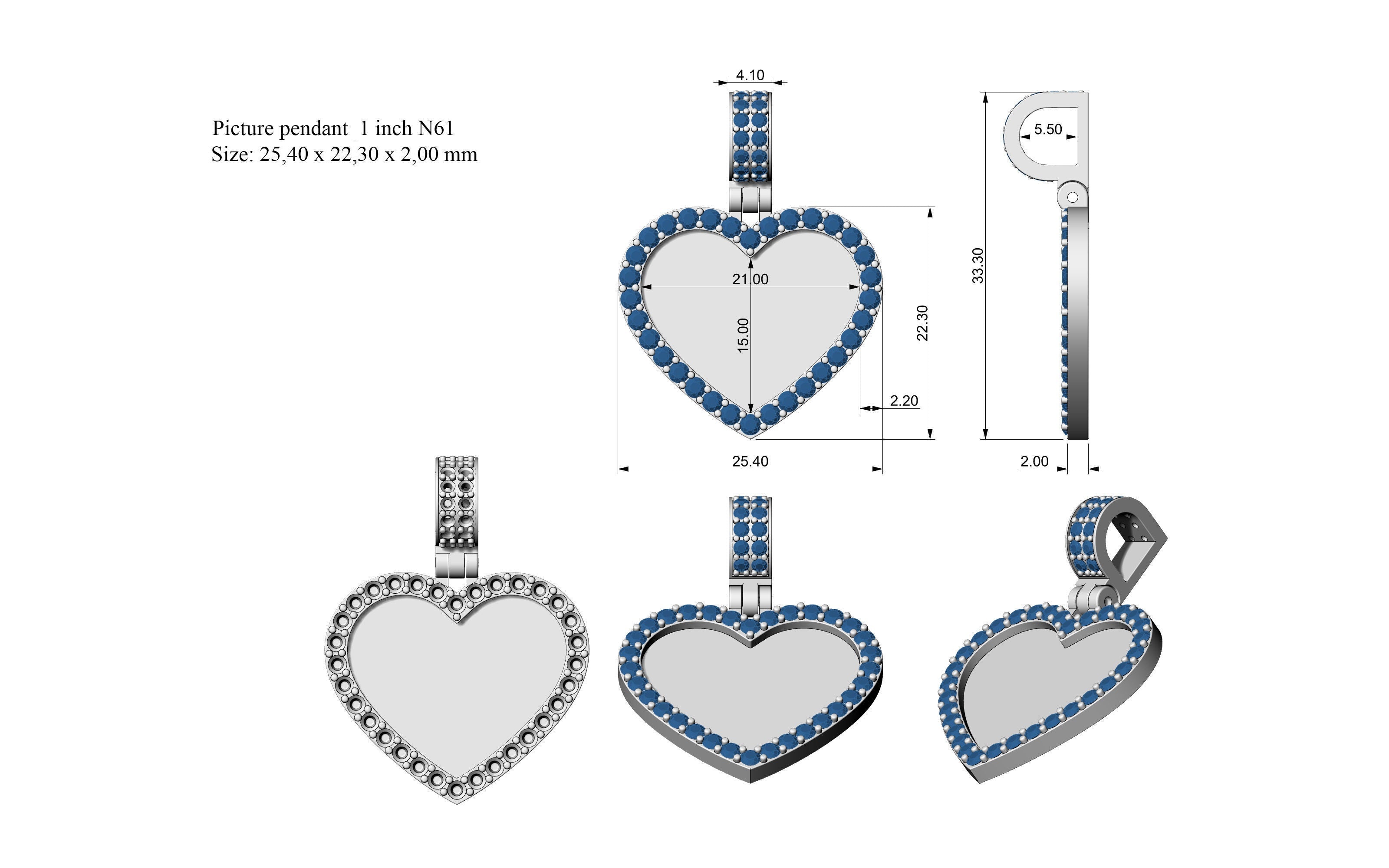 Experience the beauty and elegance of our Heart Picture Pendant, adorned with a stunning row of round brilliant cut diamonds. Available in 1.0", 1.5" and 2.0" sizes, this pendant is sure to make a statement and add a touch of glamour to any outfit. Treat yourself or a loved one to this exquisite piece and shine bright like a diamond every day!